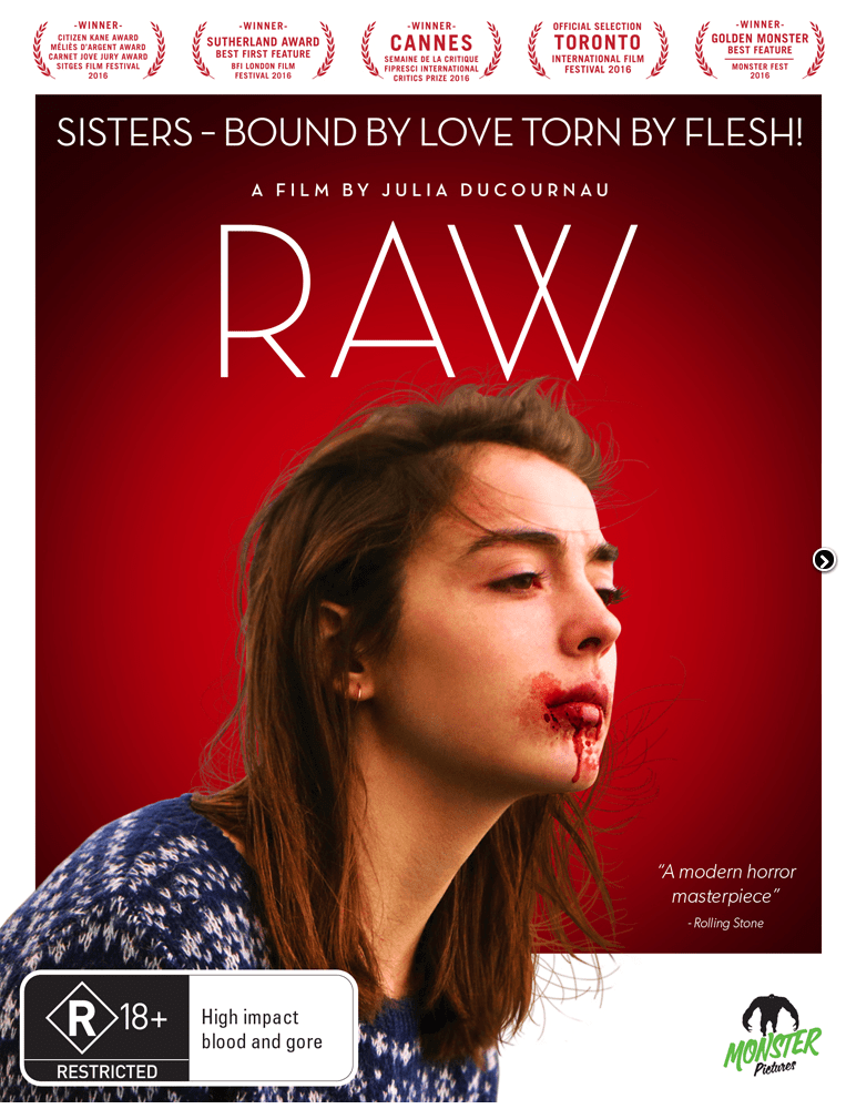 Julia Ducournau’s sensational coming-of-age directorial debut, RAW, is now available on DVD from Monster Pictures.