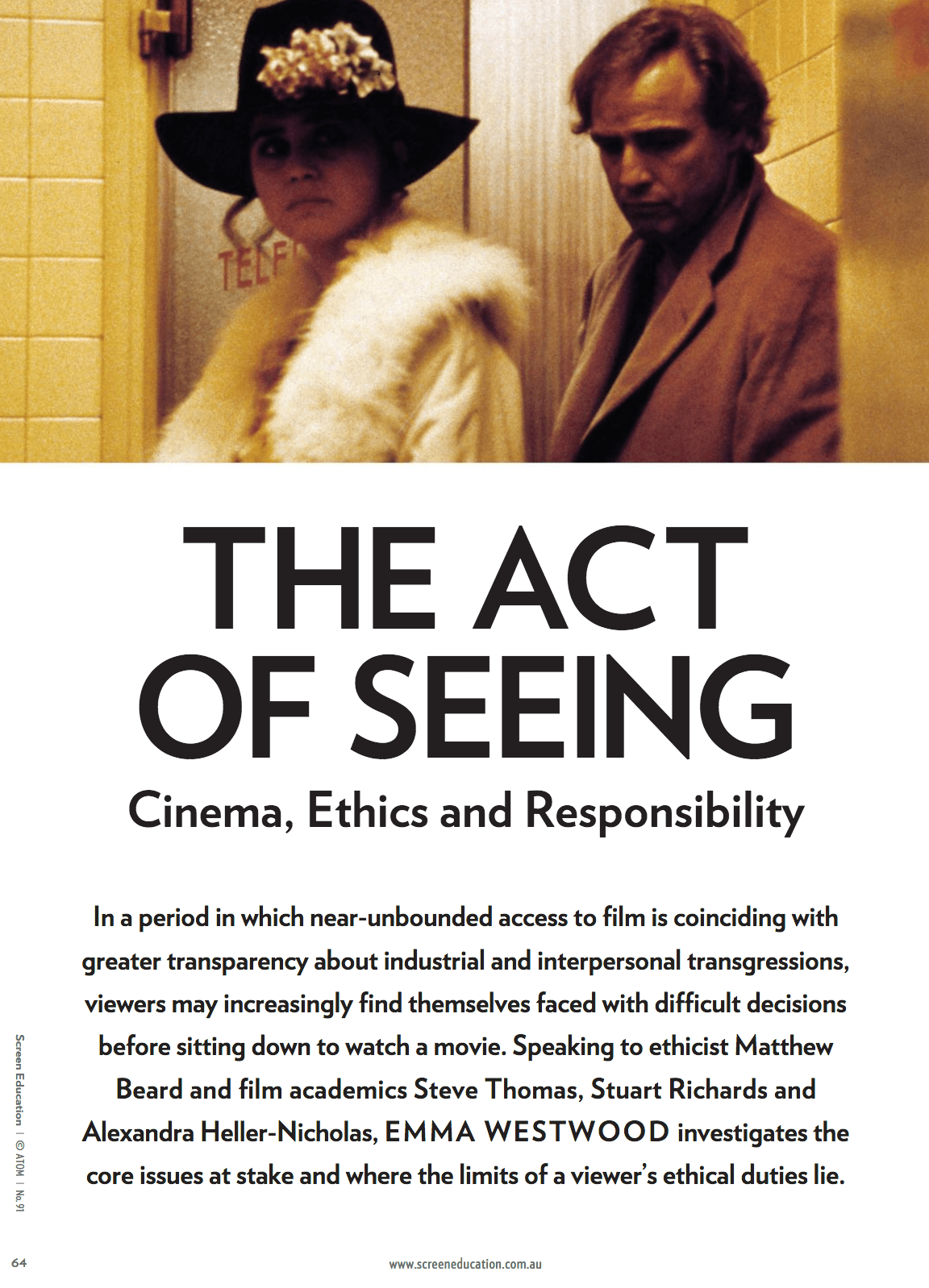 I’d like to pay my respects to the fine Australian publication, Screen Education – which recently closed its doors after 25 years – with an article I wrote for the Screen team, ‘The Act of Seeing: Cinema, Ethics and Responsibility’.